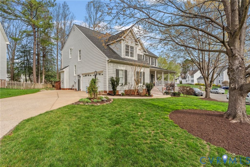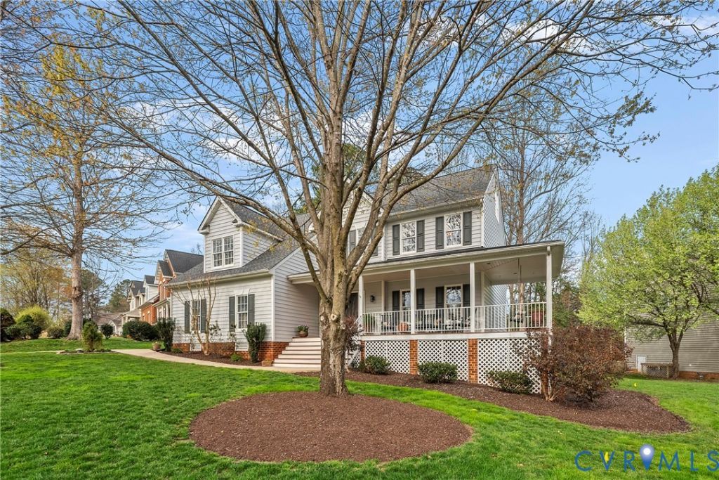Lovingly maintained by its original owners for 25 years, this classic Transitional Colonial home blends timeless character with thoughtful updates. Set on a professionally landscaped corner lot tucked between two quiet cul-de-sacs, the home welcomes you with a wraparound front porch and a striking two-story entry featuring a grand staircase, interior balcony, new chandelier, wainscoting, chair rail, and newly refinished hardwood floors. The first floor showcases beautiful hardwood floors (refinished March 2026) with the exception of the family room, crown molding, & abundant natural light throughout. The kitchen has been thoughtfully updated with quartz countertops, new hardware, lighting, & tile backsplash (2026), along w/ stainless steel appliances including an induction oven (2025), an island, pantry, & oak cabinetry. It opens seamlessly to the family room while still offering formal dining & living spaces. The family room features a gas fireplace, new ceiling fan, & direct access to the freshly repainted deck, ideal for entertaining or everyday living. A rear staircase provides added functionality & flow between levels. Upstairs, the primary suite offers crown molding, new carpet, wood shutters, & a walk-in closet. Add't bedrooms include large closets & share a hall bath w/ a double vanity. The spacious third-floor bedroom/bonus room, complete w/ a full bath, offers flexibility as a bedroom, guest suite, or the perfect hangout space. A walk-in attic adds convenience and storage. Outdoor living continues with a spacious back deck, professionally maintained landscaping, a well-manicured yard, and a designated area for a fire pit-all enhancing the appeal of this exceptional lot. The garage includes a workshop, built-ins, add't fridge, & an EV charger. Residents enjoy access to HOA amenities including a pool, tennis courts, clubhouse w/ gym and gathering space, basketball court, soccer field, and playground. Pickleball courts coming soon! This is a beautifully cared-for home in a prime setting!