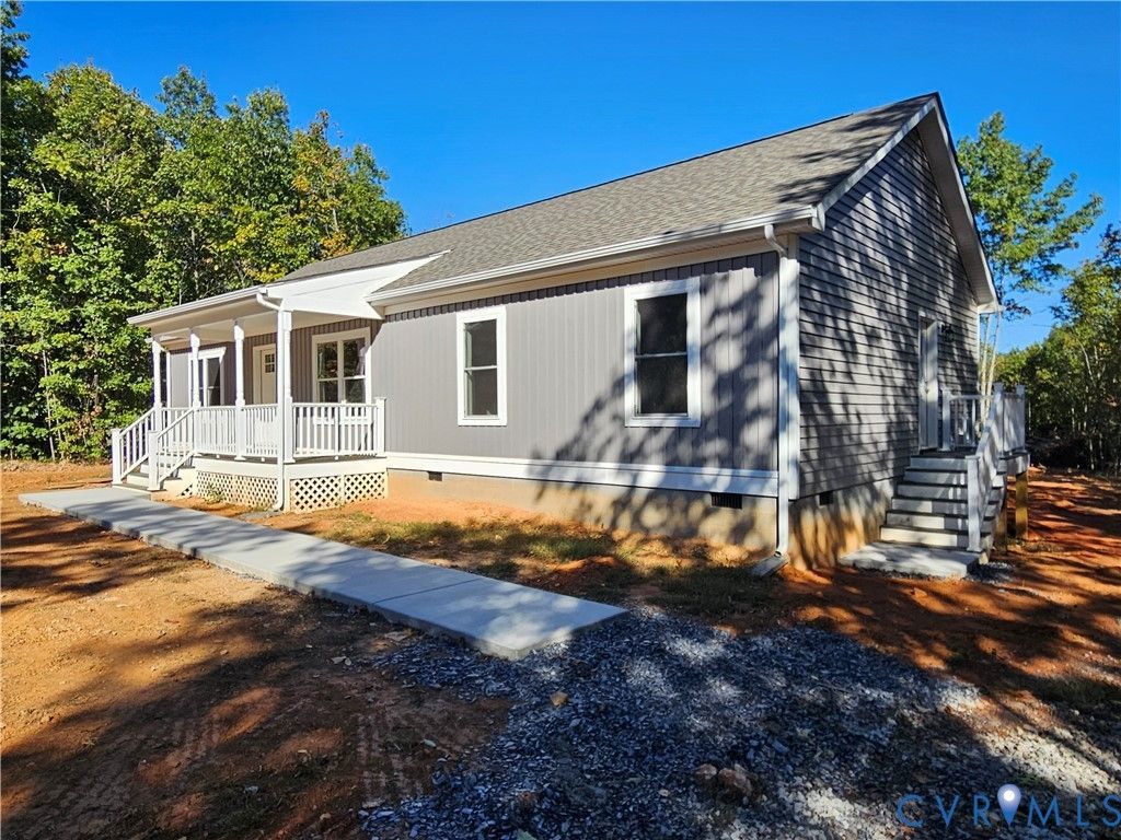 Brand, Spankin' New!!! 1568 sq ft, 3 bed, 2 bath on 3.79 ac open and spacious with front porch to welcome you home! Large kitchen with island and a pantry for additional storage. Walk-in closet (built in cubby holes) and bathroom makes the primary bedroom a place of relaxation. Large laundry next to side entrance making a quick trip to kitchen with groceries and a mud room area next to a bathroom when coming in from working hard on the great yard you envision! With both large front and back yards with plenty of sunshine for gardening, landscaping, and lots of playing! Plenty of trees for adventures, too! Located close to Scottsville on the James River, about 30 minutes to Charlottesville, Farmville, and about an hour to Richmond. Central Virginia is home to a Dark Sky Park, State Forest, Wildlife Management Areas, and fun on the rivers!