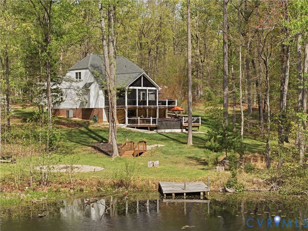 Exceptional 4-bedroom residence featuring a sought-after first-floor primary suite, perfectly positioned on a private homesite with serene pond views. Thoughtfully updated and truly move-in ready, this home offers a seamless blend of refined comfort and modern enhancements. The beautifully appointed eat-in kitchen showcases new granite countertops, updated cabinetry, and timeless finishes designed for both everyday living and entertaining. The main living area is filled with natural light and anchored by peaceful pond views, flowing effortlessly to a screened-in porch for year-round enjoyment. Upstairs, three additional bedrooms await and are complemented by a spacious flex room-ideal for a private office, home gym, media space, or optional fifth guest room. Outdoor living is unmatched, featuring a swim spa and expansive upper and lower decks designed for entertaining in all seasons. Underneath the deck is the walk in crawlspace and private storage. The private pond setting creates a rare and picturesque backdrop, offering both relaxation and exclusivity in the Mill Quarter Neighborhood. A unique opportunity to own a beautifully updated home with premium lifestyle features in a tranquil setting. No HOA. Optional Lake Membership to Lake Randolph, access near end of Mill Quarter Rd. Mill Quarter Golf Course is less than a mile away. The Village of Powhatan is less than 5 minutes away for prime dining, shopping, walking and entertainment.