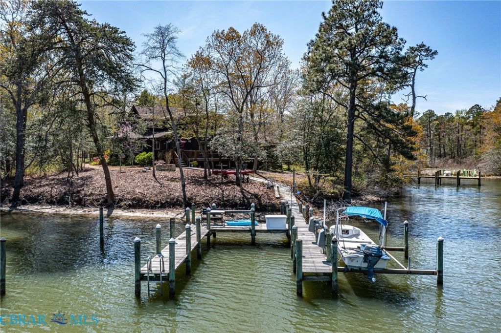Gorgeous Lindal Cedar home tucked along protected Rock Hole Creek, just off the Little Wicomico. Enjoy excellent boating from your own backyard with a private pier featuring approximately 5 MLW & a boat lift, plus easy access for kayaking & waterfront fun. This custom-designed home is truly special, showcasing dramatic cedar-lined ceilings, varied ceiling height, & soaring 2-story walls of glass that fill the home with natural light & beautiful views. The spacious living room offers an open & inviting layout with multiple sitting areas, a gas stove, & plenty of room for entertaining. The gourmet kitchen is a chefs delight - a large center island with seating, a separate bar area, abundant cabinetry & storage, & high-end Wolf & Sub-Zero appliances. A formal dining area with a 2-story ceiling adds to the homes impressive design & includes a storage closet. The 1st-floor primary suite is beautifully positioned on the waterfront & features a private bath with a jetted tub, tiled shower, & an oversized walk-in closet. A waterfront office, accessible from both the living room & the primary suite, opens to the deck, making it easy to go from work to water. Upstairs, a loft-style landing overlooks the living room & leads to 2 nicely sized guest bedrooms & a full bath with an oversized walk-in tiled shower. Outdoor living is just as inviting with a large wraparound waterfront deck perfect for relaxing or entertaining. The property also includes an attached 3-bay garage, a large generator, a detached shed, & 2+ acres. This is a one-of-a-kind waterfront retreat!