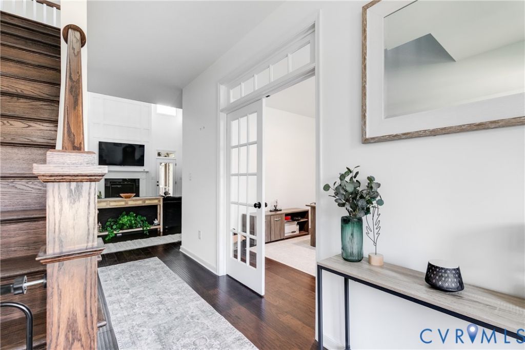 Welcome to 2919 Broadstone Court, located in the highly sought-after Bexley neighborhood. Built in 2022 by Main Street Homes, this stunning 5-bedroom, 4-bath Augusta II model blends modern style with everyday comfort, all situated on a spacious cul-de-sac lot. A charming front porch sets the tone, leading into a welcoming foyer with a conveniently located home office. The heart of the home is the impressive two-story great room, featuring soaring ceilings, rich wood floors, and an abundance of natural light. Backing to serene woods, the home offers peaceful, private views from the rear. The open-concept layout flows seamlessly into the expansive kitchen, complete with gas cooking, quartz countertops, a large island ideal for entertaining, and an adjacent dining area. A mudroom just off the kitchen provides access to the side-entry two-car garage, along with a nearby laundry room, guest bedroom, and full bath-perfect for visitors or a home office. Privately situated on the opposite side of the home, the primary suite offers a relaxing retreat with a spacious walk-in closet and a luxurious, spa-like bath. Upstairs, you'll find a versatile loft with wood flooring, ideal as a recreation room or additional living space. This level also features a private bedroom with an ensuite bath, plus two additional bedrooms and a full bathroom with a double vanity. Step outside to enjoy the screened-in porch with a vaulted ceiling-perfect for relaxing or entertaining. The fully fenced backyard, complete with a recently added black metal fence, provides ample space for pets, play, and outdoor enjoyment. Don't miss the opportunity to own this exceptional, like-new home in a wonderful community.
