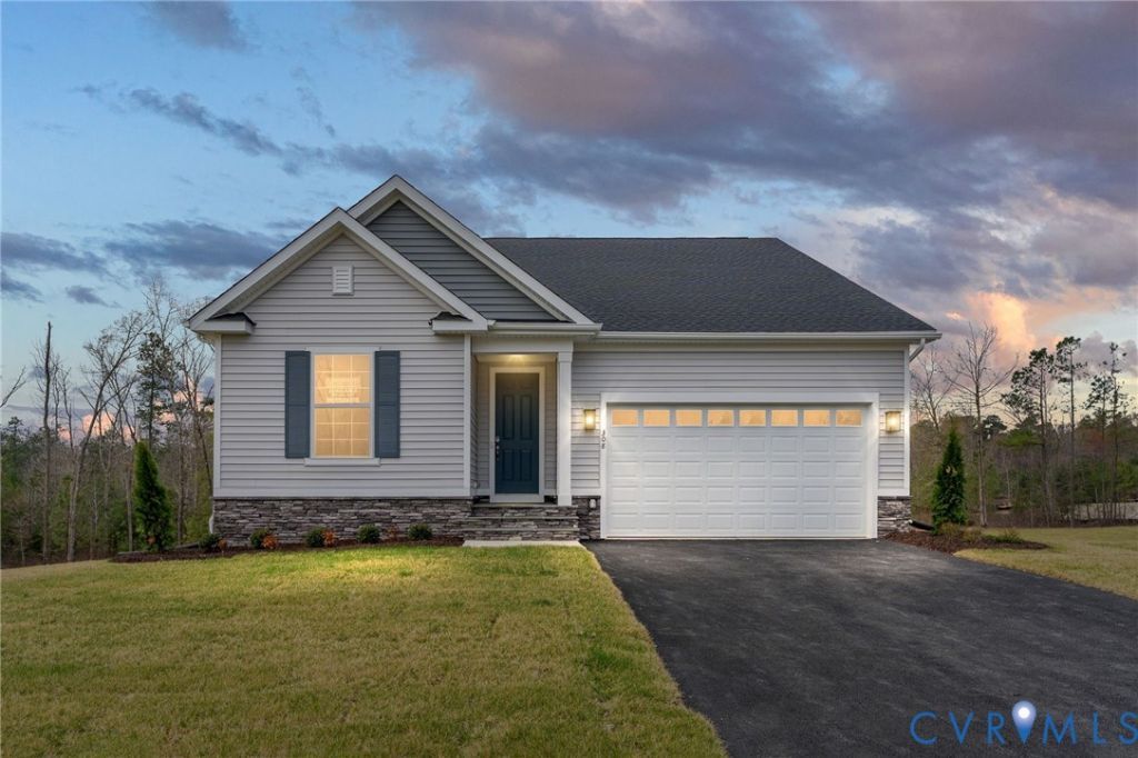 Welcome to this ranch-style Alexandrite home, ready for quick move in! Included features: a charming, covered entry, a well-appointed kitchen showcasing a center island, an adjacent dining room, a great room with electric fireplace & tv shelf, a lavish primary suite boasting a private bath and a walk-in closet, three secondary bedrooms, a full bath, a convenient laundry, and a covered deck. This home also offers a walk-out basement with and a 2-car garage. This could be your dream home! Residents of Kennington enjoy access to exceptional community amenities, including a clubhouse, fitness center, parks, playground, and two pools, along with convenient access to US-360, schools, shopping, dining, and major employment centers. Thoughtfully finished and ready to impress, this Alexandrite floorplan is must-see. Schedule your private showing today and experience the lifestyle Kennington has to offer. Interior pictures from builder library and not of actual home.
