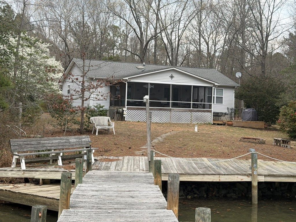 This Amazing Well Maintained Waterfront Property with 2.58 Acres and an open floor plan has so much to offer a purchaser. Highlights include a Primary Bedroom with a Primary Bathroom Suite with walk in shower and glass doors that go out to a screened in porch with amazing water views. Large Great Room includes the bright open kitchen with dining area and has large glass windows with doors that open to the screened in porch with amazing waterfront views . 2 additional bedrooms with double door closets and a hall bathroom with a tub. Skylights thru out the house including the kitchen & bathrooms bring in wonderful natural light. The exterior is just as impressive with a 27 x 12 Screened In Porch that overlooks Jackson Creek along with a patio for grilling and outside eating. A great Dock with 2 large seating benches for enjoying the quiet and tranquil Jackson creek. Wooded front yard area when you drive into the property with an attached 2 car garage/workshop which also includes a washer and dryer area with cabinets. All of this, in a beautiful waterfront community that also offer a boat ramp, dock and sandy beach for your enjoyment. A must see at this amazing price!