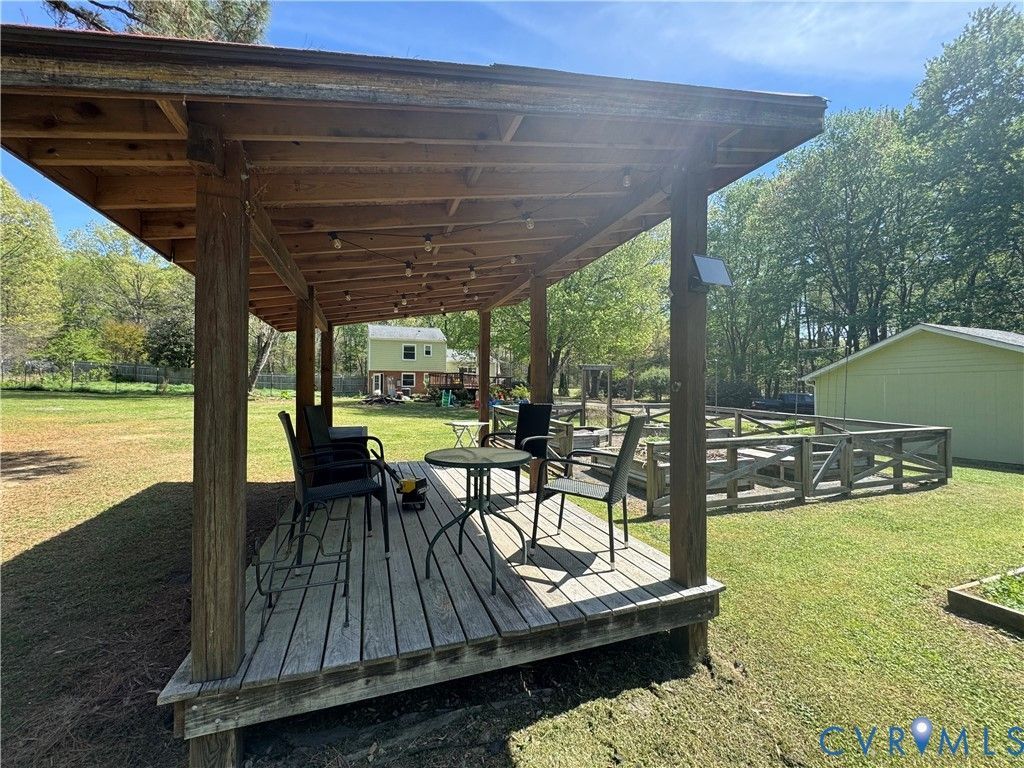 Welcome and Escape to your private 1.86-acre homestead just minutes from the city! Situated on a stunning, park-like lot surrounded by mature woods, this A1-zoned gem is ready for your goats, chickens, and garden dreams. Outdoor enthusiasts will love the premier location directly on the Capital Trail bike path. Ride your bikes West to breakfast lunch and dinner, or ride 30 minutes East to the Shirley Plantation for a day of outdoor enjoyment with wine and delicious foods. Perfectly located in the Heart of Varina. OR you can just stay at home on your own country oasis and relax in the gazebo or tend to your raised beds and included chicken coop. The massive 800 sq ft detached garage is a hobbyist's dream, featuring a workshop, 1-car parking, and ample storage. Large 2 tier deck off the kitchen for grilling and chilling. Inside, the home shines with a 2020 kitchen renovation w/ new fridge and microwave 2025, built-ins in the family room, beautiful hardwoods mostly throughout, new carpet in the basement family room and tile in the bathrooms, fresh paint throughout and so much more. Peace of mind comes standard with major infrastructure already handled: New HVAC (2025), Water Heater (2024), and Septic & HardiPlank siding (2020). Whether you're sipping coffee on one of the many relaxing areas or exploring your nearly 2 acres of fields and shade, this is the country retreat you've been waiting for. Schedule your showing today to see this amazing home on a gorgeous lot!!!