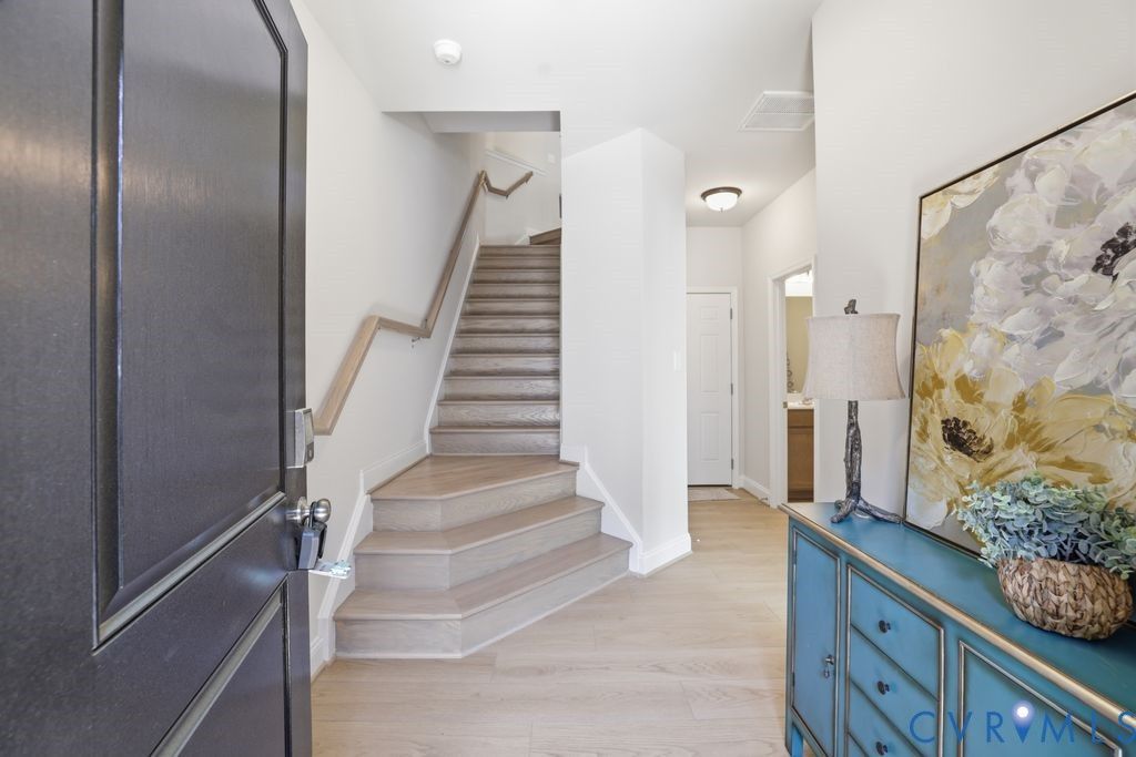 Welcome to this stunning modern townhome in the heart of Glen Allen offering 3 bedrooms, 3 full bathrooms, and stylish low-maintenance living. Designed with both comfort and entertaining in mind, this home features a bright, open floor plan filled with natural light and beautiful finishes throughout. The gorgeous updated kitchen is truly the centerpiece of the home, complete with a large island perfect for gathering, built-in wall microwave and oven, stainless steel appliances, custom cabinetry, and elegant pendant lighting. The kitchen opens seamlessly to the spacious dining and living areas, creating the perfect space for hosting friends or enjoying everyday living. Upstairs you'll find spacious bedrooms including a luxurious primary suite featuring a large walk-in closet and a beautifully appointed en-suite bath with double vanity and a walk-in tiled shower. Each level of the home offers thoughtfully designed space, providing both privacy and functionality. A standout feature of this property is the private rooftop patio, offering the perfect outdoor retreat for relaxing, entertaining, or enjoying evening sunsets. The garage features a durable epoxy-coated floor, adding both style and practicality. With modern architecture, high-end finishes, generous living space, and an unbeatable Glen Allen location close to shopping, dining, and major commuter routes, this home offers the perfect combination of style, convenience, and low-maintenance living.