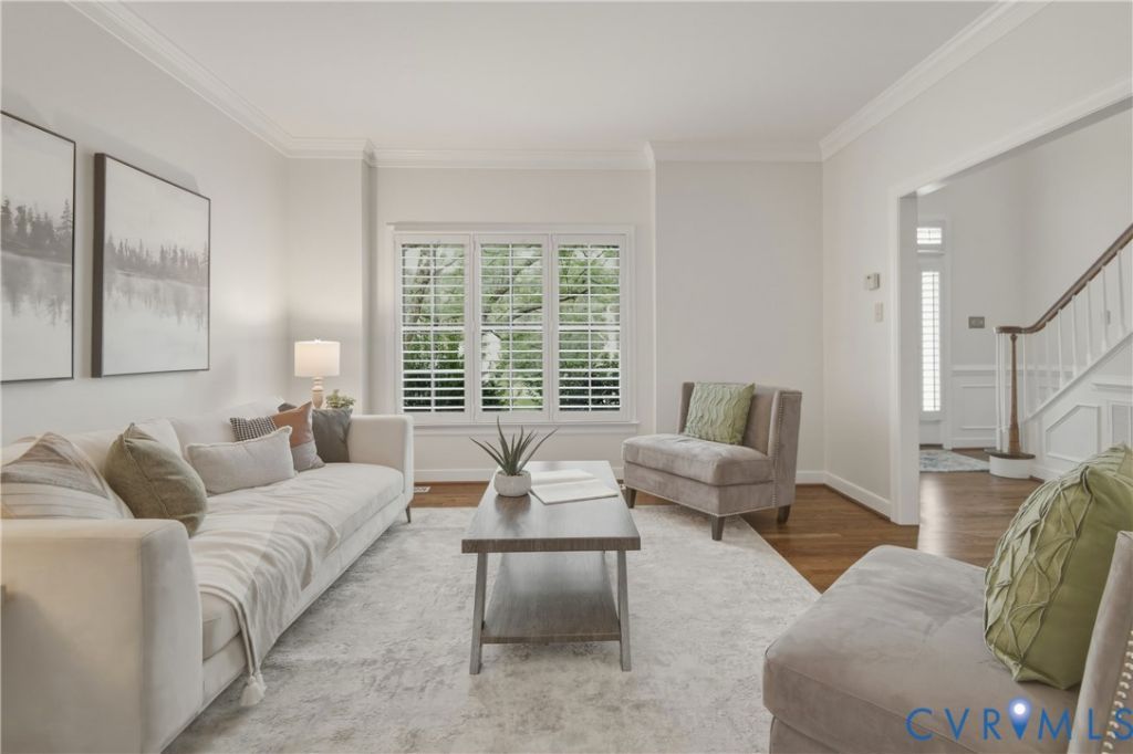 Welcome home to 5408 Meadow Chase Road nestled in the beautiful, desirable and amenity-filled neighborhood of Woodlake! As you enter the property, you are greeted by the two-story foyer, chair, and crown molding plus NEWLY REFINISHED hardwood floors sweeping through. Light and bright as there's tons of windows with desirable plantation shutters, creating an enjoyable space. The kitchen is a chef's delight boasting updated cherry cabinets with beautiful granite countertops, and stainless-steel appliances! You will love the breakfast bar that opens to the eat in dining area with the bay window overlooking the rear yard. The kitchen is also open to the step-down family room with a large, vaulted ceiling, skylights, ceiling fan, and warming gas fireplace. Fantastic back deck for grilling in an entertaining and completely fenced in, overlooking a wooded backyard for privacy. The living room is spacious with room to entertain. Plus, fantastic, mudroom, craft room or anything your heart desires with countertops and cabinets off of the hallway. As you head upstairs, you will find a large primary suite complete with a try ceiling and a vast primary bathroom with shower and soaking tub. The additional three bedrooms are spacious with a full bathroom and double vanity. Second floor laundry for convenience. Also, you will love one of the bedrooms as it can function as a bonus room that is stepped down with plenty of space. FRESHLY painted interior and NEW plus carpet in the family room and second floor. You will love the 14 miles of trails would like has to offer in the award-winning pools. This is not just a home. It's a lifestyle. Come make it yours today!