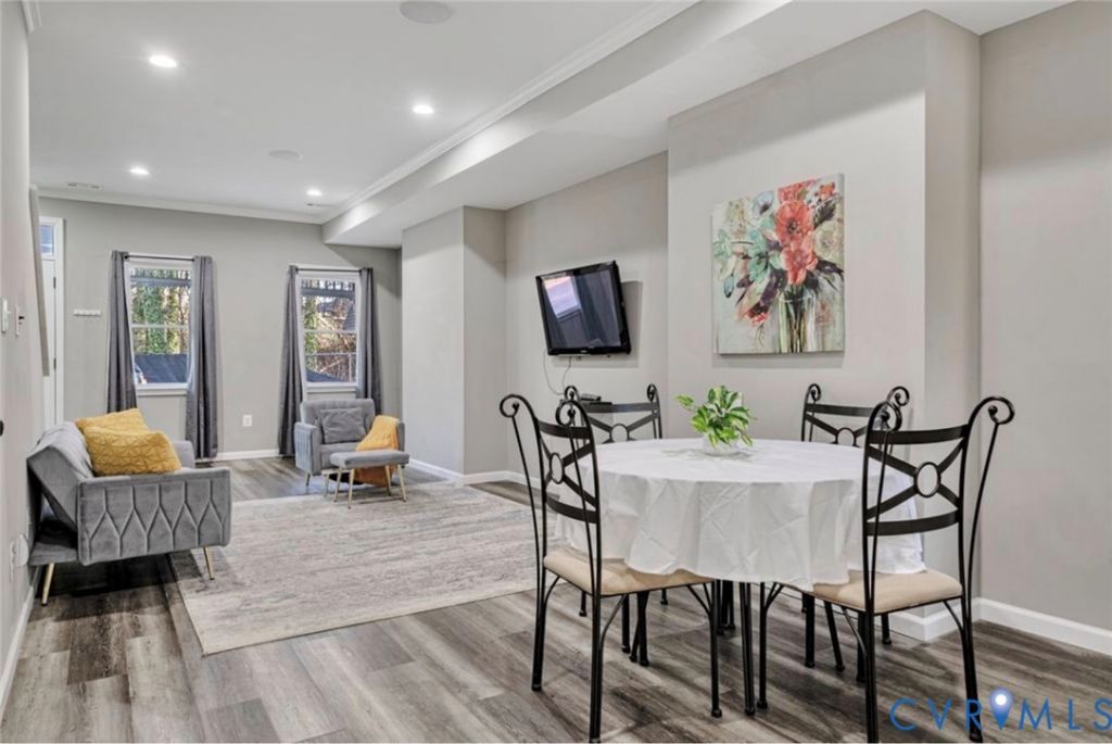A unique opportunity in the vibrant Historic Jackson Ward community! This beautifully renovated home offers an open-concept floor plan and thoughtful design throughout, including two primary suites, each with walk-in closets and private full baths. This Smart home is equipped with a surround sound and security system. An excellent opportunity for investors-ideal for VCU students, traveling nurses, or anyone seeking modern comfort in a prime location. The main level features 9' ceilings, abundant natural light, LED recessed lighting, fresh paint, LVP flooring, and a convenient half bath. The gorgeous entertainer's kitchen includes white cabinetry, granite countertops, a breakfast bar, stainless steel appliances (all convey), and a wine chiller. Upstairs, you'll find two spacious en-suite bedrooms, each offering walk-in closets, stylish bathrooms with walk-in showers, and ceiling fans for added comfort. Additional highlights include: Privacy-fenced rear yard, Covered front porch, Quiet 3-home cul-de-sac with no through traffic, Newer HVAC, Vinyl siding & replacement windows, 30-year dimensional roof. Located in a area with ongoing redevelopment, this home blends historic charm with modern convenience-ready for its next owner.